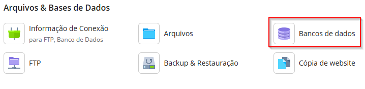 - Acesse seu painel plesk no grupo Arquivos & Bases de Dados > banco de dados , clique em exportar despejo, conforme imagens abaixo: