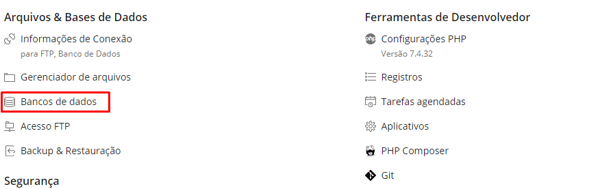 Clique em Banco de dados e selecione o banco que deseja utilizar