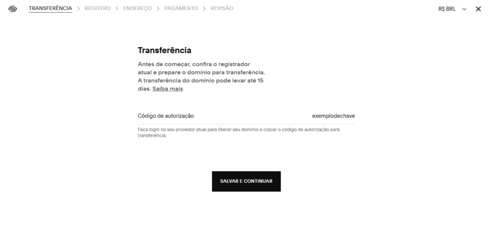 6. Informe o código de transferência do domínio (Chave EPP) que o provedor (ex. a CentralServer) irá lhe fornecer:
