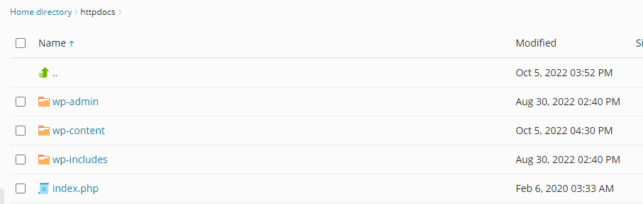 No exemplo abaixo o WordPress foi instalado dentro da pasta raiz httpdocs/, portanto o acesso ao site deve ser feito através de http://SeuDomínio/