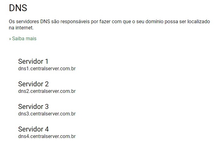 Para você utilizar o serviço de DNS da CentralServer é necessário que cadastre as entradas abaixo no painel do seu domínio na entidade de registro, como o Registro.br ou similares.